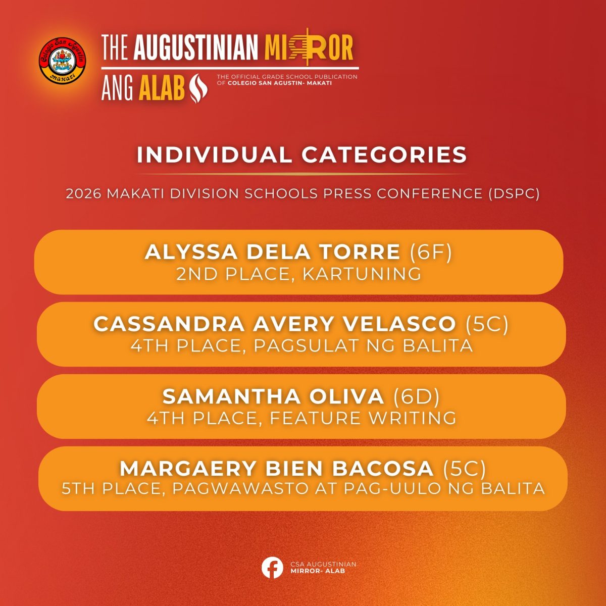 Your passion for truth, creativity, and excellence truly reflects the Augustinian spirit. We are proud of you! Keep the flame of Alab burning bright! 🔥👏