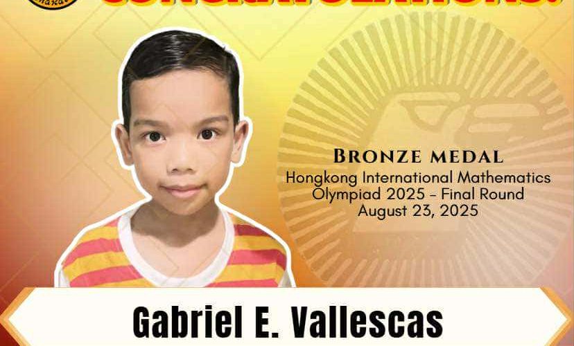 Dedication and brilliance lead to global success! We celebrate Gabriel E. Vallescas from the Grade School Department for securing a BRONZE MEDAL in the Hong Kong International Mathematics Olympiad 2025 Final Round last August 23. Your commitment to excellence inspires us all.