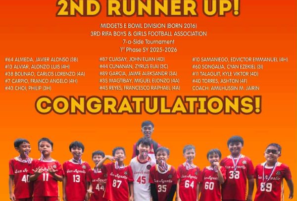 The CSA community congratulates our Football Midgets C (Born 2016) for placing 2nd Runner-up (Plate Division 2) in the recently concluded Rizal Football Association football festival last October 26, 2025 at Claret School of Quezon City. Soar high, Augustinians! #64 ALMEDA, JAVIER ALONSO (3B) #13 ALVIAR, ALONZO LUIS (4H) #38 BOLINAO, CARLOS LORENZO (4A) #7 […]