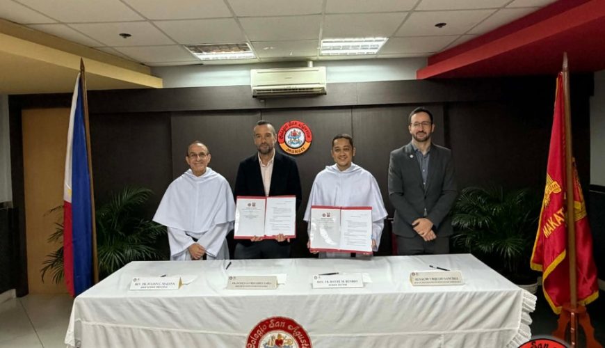 The partnership was formalized this morning through a signing of a Memorandum of Agreement. Present during the signing were Fr. Dante M. Bendoy, OSA (Rector), Fr. Julian C. Mazana, OSA (Vice-Rector), Mr. Ringo Blanca (Diploma Programme Coordinator), Mr. Francisco Javier Lopez Tapia (Director of Instituto Cervantes Manila) and Mr. Ignacio Urquijo Sanchez (Head of Instituto Cervantes Manila).