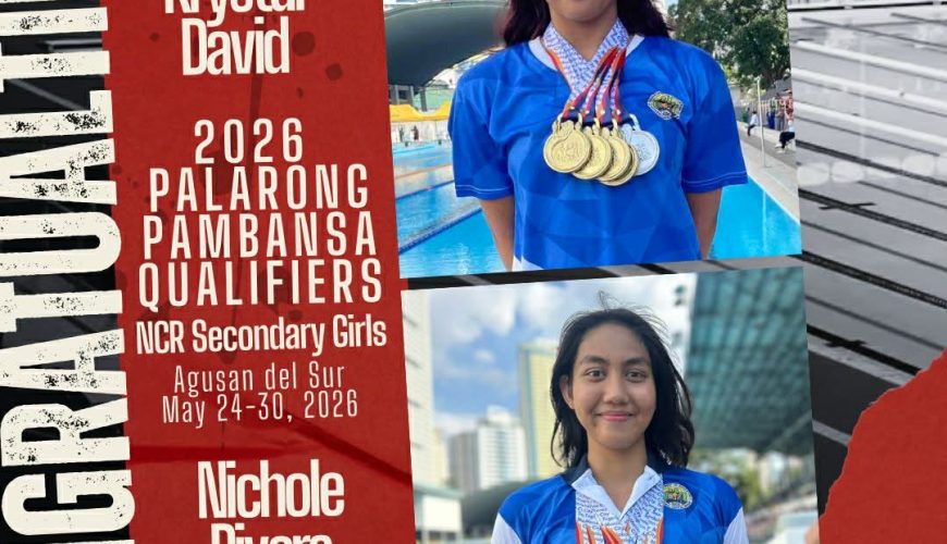Krystal David, 9-D and Nichole Rivera, 12-I, members of the CSA Varsity Swim Team, will join the NCR Team contingent in the 2026 Palarong Pambansa, which will be held in Agusan del Sur from May 24-30, 2026.